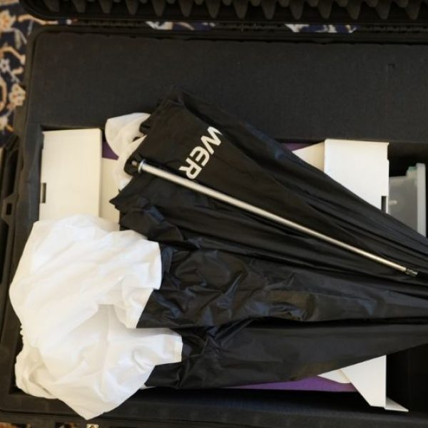 In the case we keep all the knobs and extra cords that are required to assemble the booth. There is a base, two columns, a head bracket, and head that all screw together to complete the photo booth. The photo booth head and the 2 columns fit snug inside the case. Down below is the bracket to hold the T12 photo booth head. This is the last bracket that goes into the case because it is a tight snug fit.