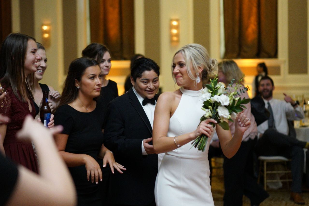 This tradition is still popular today, but it has evolved over the years. For example, some couples choose to remove the gender aspect of the tradition and throw the bouquet and garter to all of their single guests. Others choose to have a fun game or competition before the toss to determine who gets to catch the bouquet and garter. (More on this later)