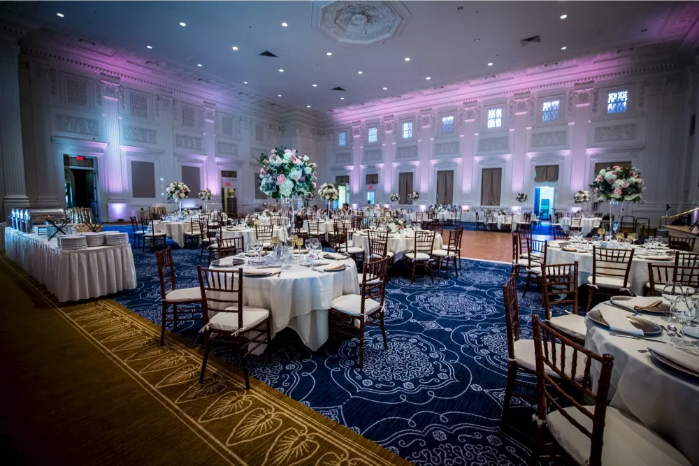 Downtown luxury demands flawless execution. The Sentinel's Governor Ballroom has hosted our setups for everything from intimate 50-person dinners to 300-guest galas. We match their elegance while keeping dance floors packed until the very last song.
